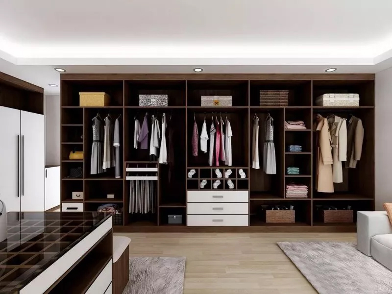 成年女性可在衣柜增加层板,设置饰品柜或贴身衣物区。而成年男性衣柜则要增加悬挂区,如悬挂西裤的裤架。夫妻共用衣柜时可按4:6的比例划分,以更好存取衣物。